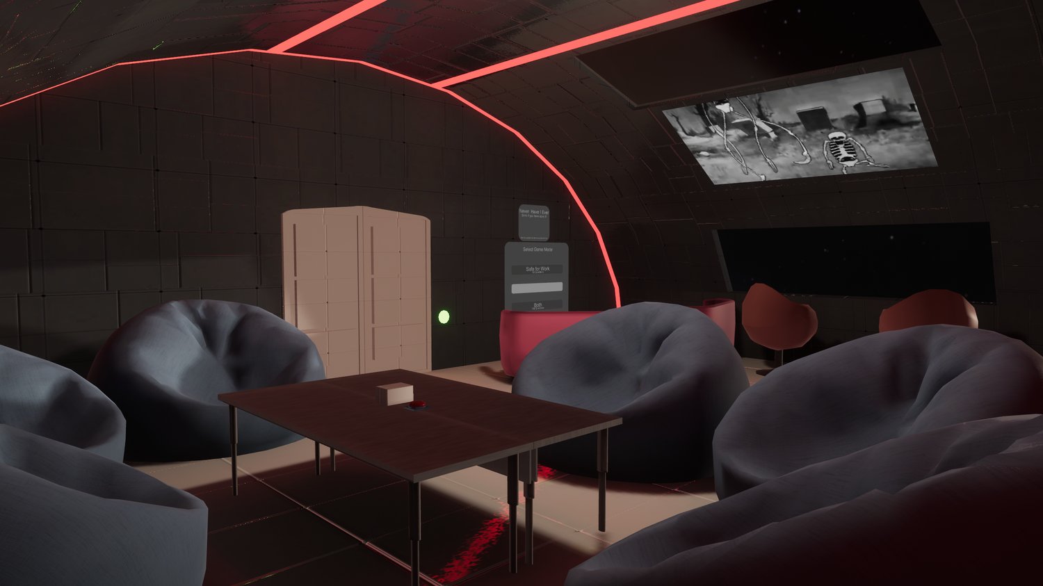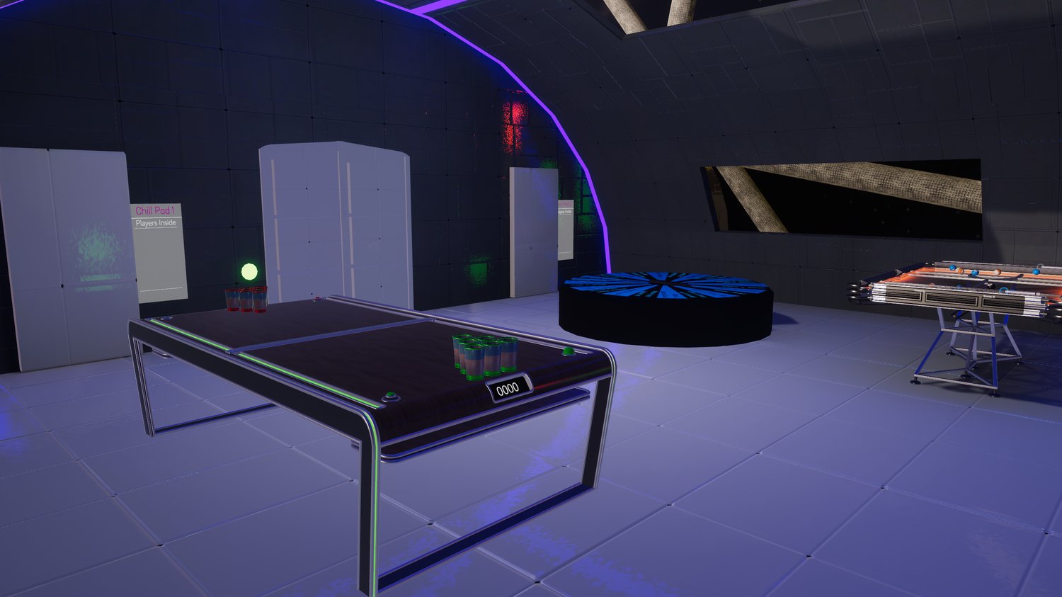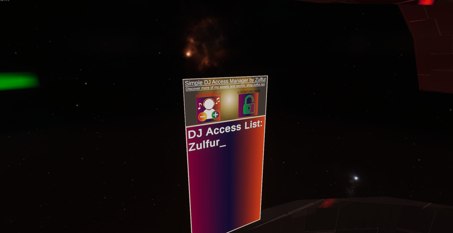 This quest compatible space world features a video player, DJ booth with private access list, staff control panel, staff room with a security camera system, drinking games, shot timer and even private chill pods. This quest compatible DJ and party world takes you on a journey through outer space, vibe in a cozy vibrant club space with your PC and Quest friends. This world is ready out the box, you can slap your branding on it and run it as is or modify it to your liking. It also has a dynamic movement/planet system where you will see planets of the solar system as you wizz by.